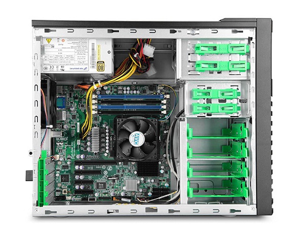 Construido sobre un robusto chasis en formato torre, el Gateway GT115 F1 ofrece toda la flexibilidad que necesita un equipo de estas características. En su interior, encontraremos cuatro bahías para discos SATA de 3,5″ y las posibilidades de expansión están garantizadas gracias a su cuatro ranuras PCI (x4, x8 y dos x16). Una grabadora de DVD completa el equipamiento de serie.