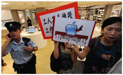 Las ONG dicen haber descubierto evidencias de normas draconianas y excesivas horas extraordinarias para cubrir la demanda occidental para los iPhones y iPads entre los 500.000 trabajadores de las fábricas de Foxconn en el sur de China (Shenzhen y Chengdu). Las condiciones laborables deplorables denunciadas por las ONG comienzan en el salario de 141 euros mensuales por 48 horas semanales de trabajo lo que obliga a los empleados a realizar innumerables horas extraordinarias, hasta el triple del límite legal. Además de las condiciones económicas se denuncian la humillación pública por errores al realizar las tareas o el hacinamiento en dormitorios múltiples al estar ‘castigados’ a vivir en la misma fábrica.