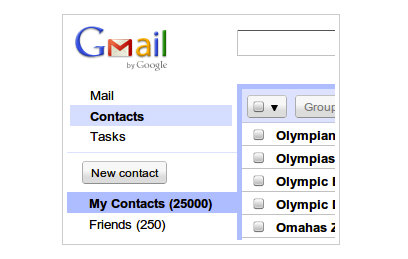 Gmail eleva el número de contactos hasta 25.000