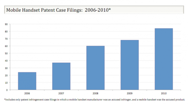 Solo el agosto pasado se presentaron 294 demandas por violación de patentes. Entre las más conocidas está el caso de Apple contra Samsung, que se acaba de saldar con la victoria de los primeros, impidiendo vender la tableta de la coreana en Alemania. A pesar de la presunta falsificación de pruebas de los de Cupertino.