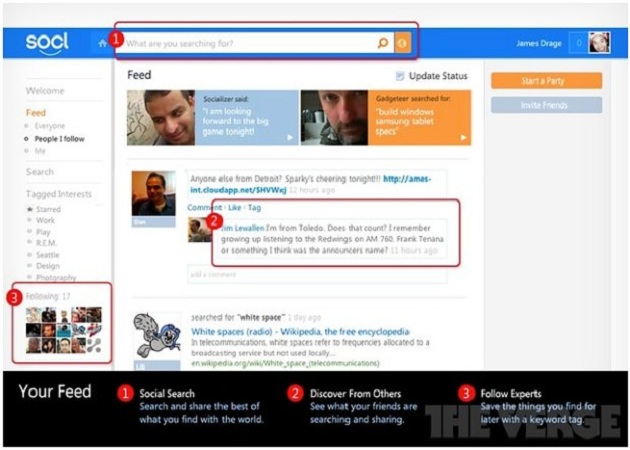 La columna de la derecha estaría dedicada a las “video party”, para que los usuarios puedan disfrutar del contenido con sus amigos. Al igual que los Me gusta de Facebook o el +1 de Google+, Socl también integrará un sistema para que los usuarios puedan opinar de manera positiva sobre los contenidos de sus amigos.