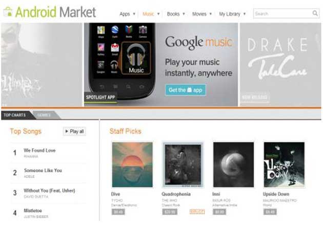 Google Music se integra con la tienda en línea para smartphones y tablets Android Market y ofrece compra de canciones desde 99 céntimos de dólar y 10 dólares por el álbum completo desde ordenadores, dispositivos Android o desde la red social Google+. También incluye un servicio básico libre con 20.000 canciones gratuitas. Además podrá descargarse de forma gratuita una canción de pago al día.