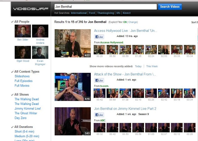 VideoSurf, que ya cuenta con 50 millones de usuarios, ha recibido fuertes inversiones de celebridades como el político estadounidense Al-Gore o Shirley Sandberg, jefa de operaciones de Facebook. Además, La página tiene capacidad de encontrar rápidamente videos alojados en diversos sistemas como Hulu, CNN, TMZ, Metacafe, Fancast, Comedy, Central o Daylimotion, permitiendo un amplio rango de resultados.