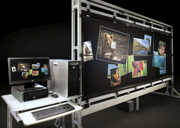 El sistema incluye una estación de trabajo HP Z800 en la que destacan tarjetas gráficas dedicadas Radeon de AMD con tecnología multipantalla EyeFinity y capaz de mover esas 132 pulgadas de diagonal. Un segundo ordenador, un HP Pavilion Slimline, se encarga del procesamiento del color y de manejar el sistema de audio.