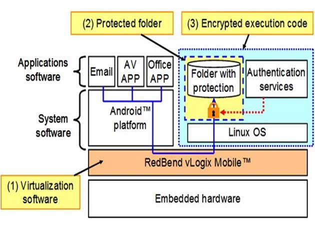 La compañía japonesa intenta blindar terminales telefónicos del aumento de malware asociado a las plataformas móviles y en especial a Android, a la cabeza del mercado. El sistema propuesto por Panasonic y Red Bend utilizaría software de virtualización basado vLogix Mobile Linux trabajando de forma independiente y simultánea con Android.