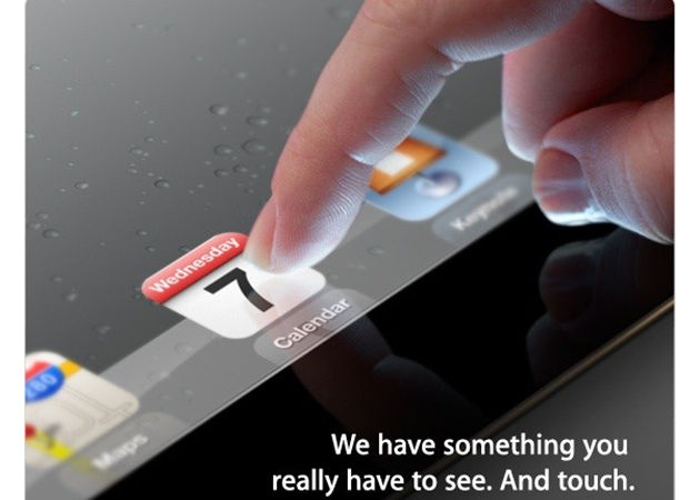 “Tenemos algo que realmente tienes que ver. Y tocar”, reza una leyenda sobre la imagen de una pantalla táctil, en la invitación para un evento Apple programado para el miércoles que viene a las 19:00 (hora española). Mensaje escueto al estilo de los de Cupertino pero sobradamente explícito de que se trata de la presentación del iPad 3.