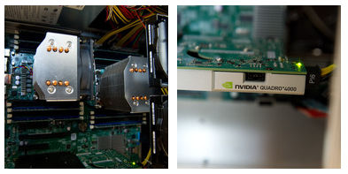 El equipo mostrado por Supermicro es una estación de trabajo con placa de doble procesador, una unidad de estado sólido de 128 Gbytes, dos discos duros de 1 Tbyte y una gráfica dedicada NVIDIA Quadro.