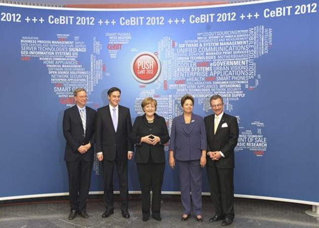 CeBIT 2012. La canciller alemana Angela Merkel, el presidente del consejo de administración de Google Eric Schmidt, y la presidenta de Brasil, Dilma Rousseff como autoridades más relevantes, han inaugurado esta tarde en la ciudad alemana de Hannover la edición 2012 del CeBIT.