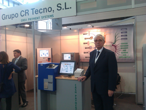 La alicantina presenta en la feria la máquina Cash Bank Cube, un sistema compacto de pago en efectivo, una de sus últimas novedades que están mostrando a toda Europa.