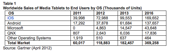 El nuevo informe de Gartner no hace sino confirmar otros anteriores: 2012 será el año del tablet y entre ellos seguirá reinando el iPad de Apple con una cuota de mercado del 61 por ciento, aunque haya perdido una buena parte el último año a manos de Android.