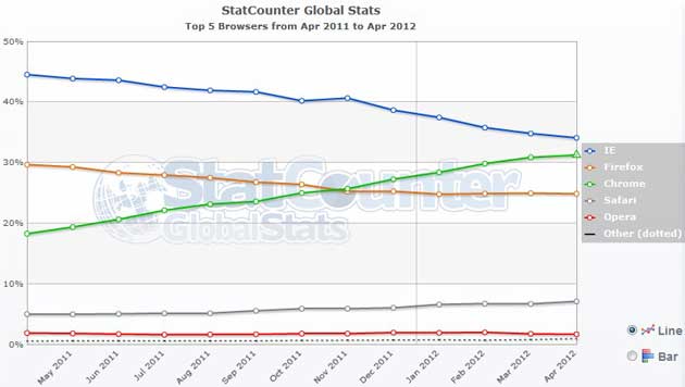 Chrome no ha superado a Internet Explorer, rectifica StatCounter