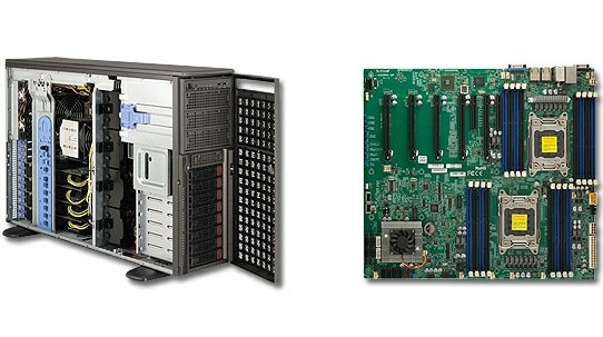 La estación de trabajo de SuperMicro utiliza una placa con doble socket LGA-2011 para incluir dos microprocesadores Intel de última generación Xeon, modelo E5-2600. Su capacidad de memoria se extiende hasta 512 Gbytes DDR3 ECC.