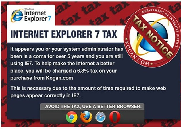 El retailer australiano Kogan ha comenzado a cobrar una tasa adicional para las compras realizadas en su portal web usando el navegador web Internet Explorer 7.