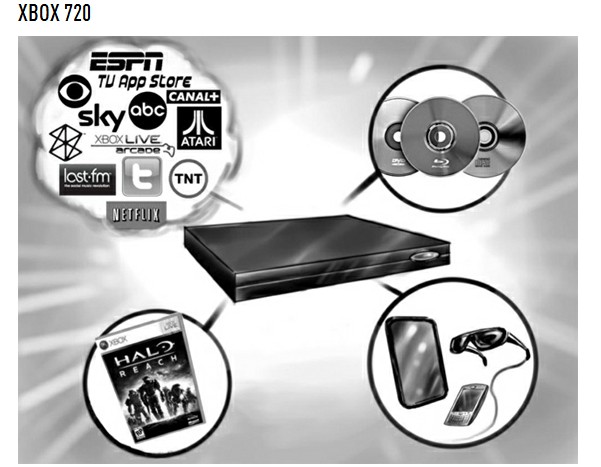 Microsoft coloca a su consola Xbox 720 como el único dispositivo necesario para el entretenimiento del hogar ya que tendría capacidades como grabar programas de la televisión entre otras funciones de un set-top-box. Estaría gobernado por el sistema operativo Windows 8, tendría un precio de venta de 299 dólares y un ciclo de vida de diez años. Microsoft predice incluso el número de unidades que se venderían: 100 millones de Xbox 720.