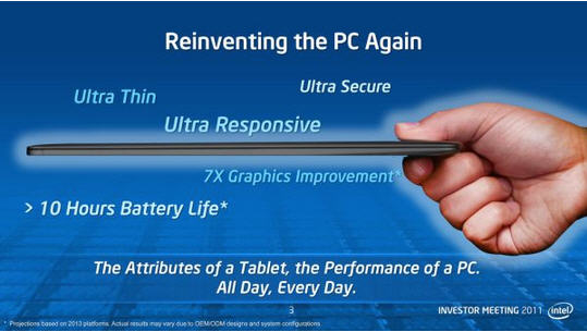 Sin embargo, en la feria Computex de 2011 Intel presentó su ambiciosa iniciativa al respecto, creando una nueva gama de soluciones a la que llamó ultrabooks y en la que invirtió 300 millones de dólares para impulsarla desde el inicio.