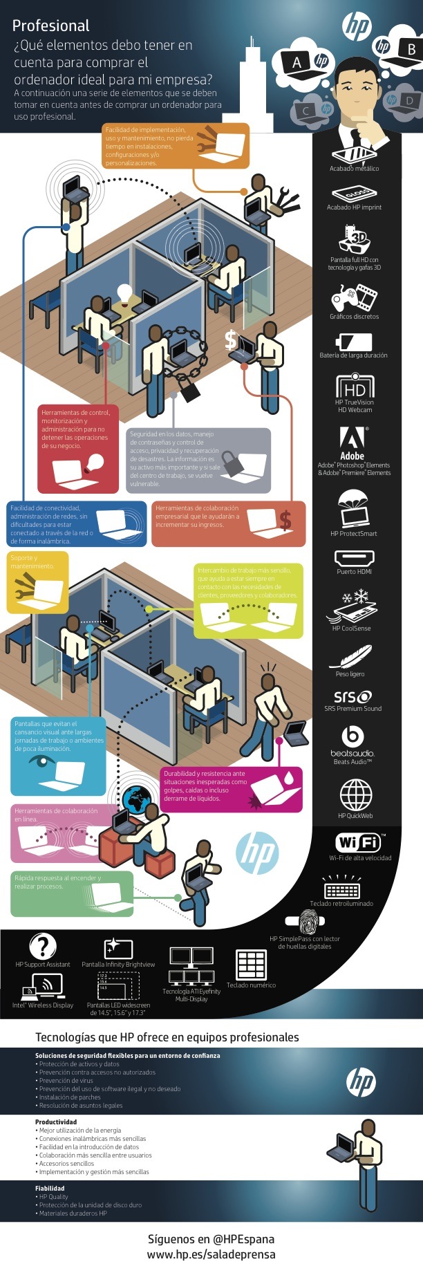 HP nos brinda en un amigable formato de infografía los principales puntos a tener en cuenta a la hora de adquirir un portátil profesional.