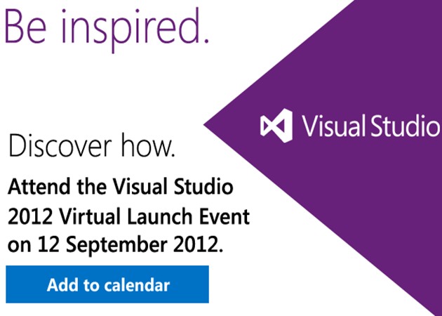 Visual Studio 2012 estará disponible para suscriptores de MSDN el 12 de agosto y un mes después, el 12 de septiembre, Microsoft realizará un lanzamiento público en un evento virtual. Visual Studio 2012 se une al anuncio esta misma semana de Windows Server 2012 y Windows 8 completando el periodo de mayores lanzamientos software de su historia.