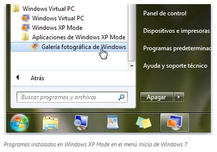 Al instalar un programa en Windows XP Mode, el programa aparece en la lista de programas de Windows XP Mode y en la lista de programas de Windows 7 para que pueda abrir el programa directamente desde Windows 7.