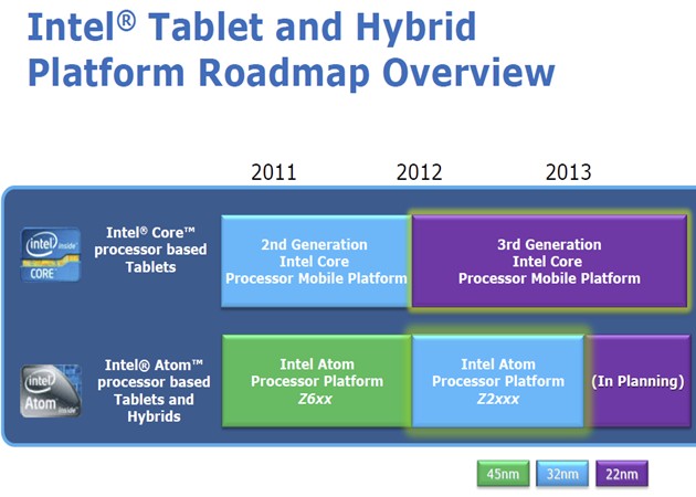 Una familia de chips Atom Z fabricados en procesos tecnológicos de 32 nanómetros y ofrecidos en formato SoC con CPU de doble núcleo de procesamiento nativo, GPU y controladora de memoria.