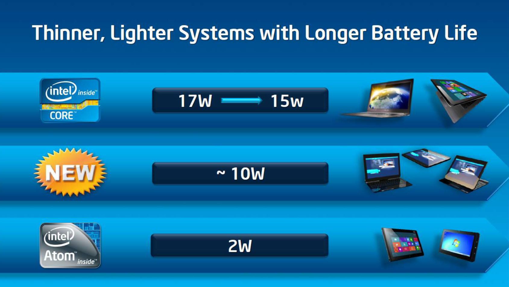 La imagen que acompaña a estas líneas ilustra, de manera esquemática, la drástica reducción en cosumo que han conseguido los ingenieros de Intel en solo unos años. Un Intel Core de última generación consumirá lo mismo que aquellos Intel Atom que hacían funcionar los primeros netbooks, ofreciendo varias veces superior.