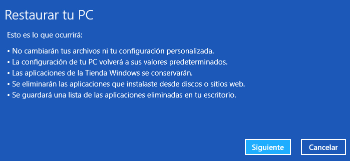 ¿Demasiado bueno para ser verdad? No, en absoluto, ahora es una de las mejores características de Windows 8. Con las versiones anteriores de Windows o ejecutabas la rutina de restauración del fabricante de computadoras en alguna partición incorporada en el disco o discos ópticos o arrancabas el PC con un disco de instalación de Windows e instalabas una versión limpia del sistema operativo.