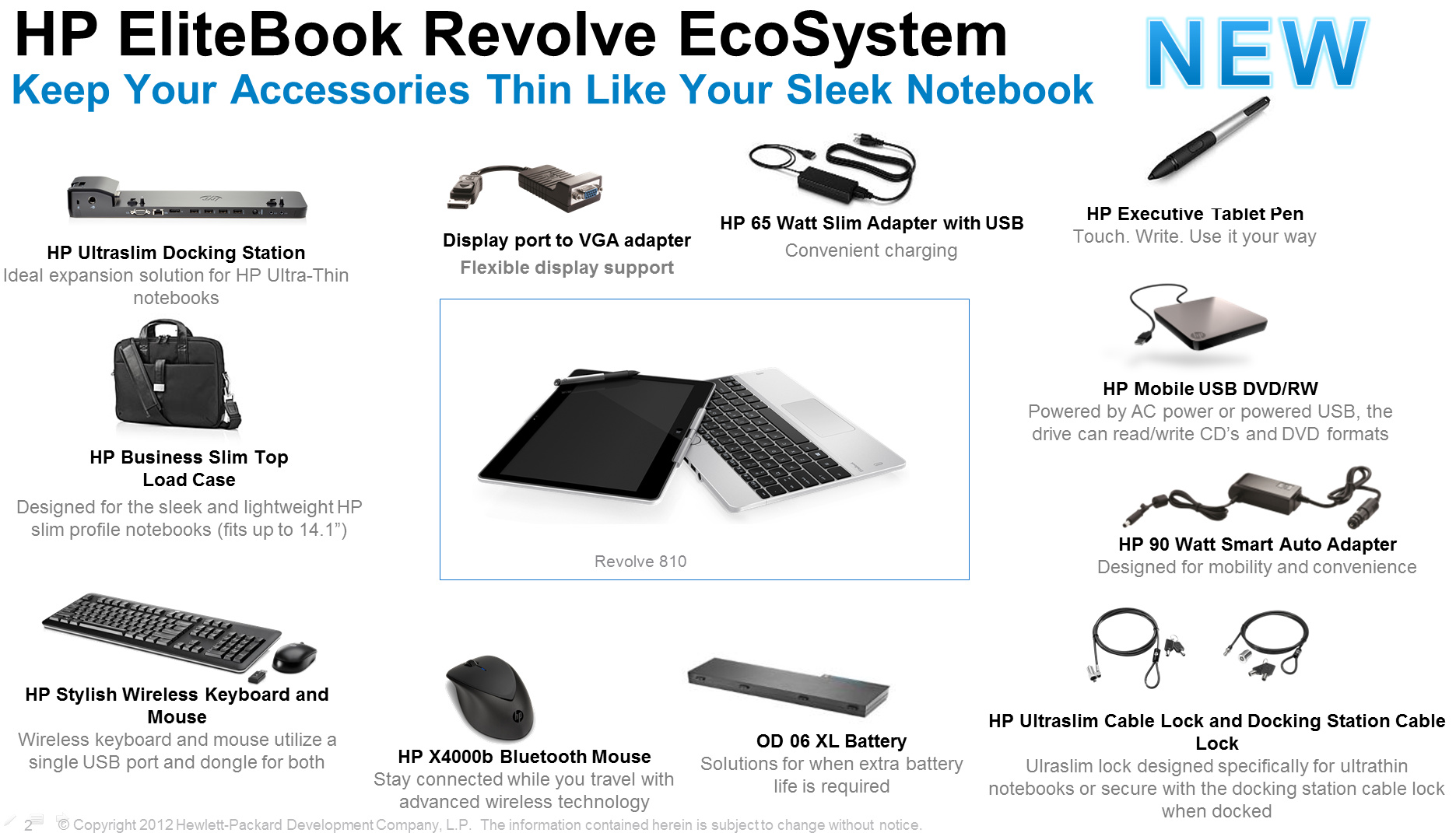 El lanzamiento del EliteBook Revolve 810 es inminente y junto a este Ultrabook convertible profesional, HP ofrecerá un amplio número de accesorios para potenciar su productividad, aumentar su autonomía, su versatilidad, conectividad o simplemente transportarlo de manera segura.