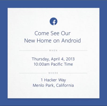 Después de presentar el nuevo diseño de su News Feed en un evento celebrado el pasado mes de marzo, Facebook vuelve a citar a la prensa el próximo jueves para hablar de un tema relacionado con Android. La compañía de Zuckerberg ha convocado a la prensa bajo la premisa «ven a ver nuestro nuevo hogar en Android». Es lo único que se ha desvelado, se desconoce por completo qué van a presentar.