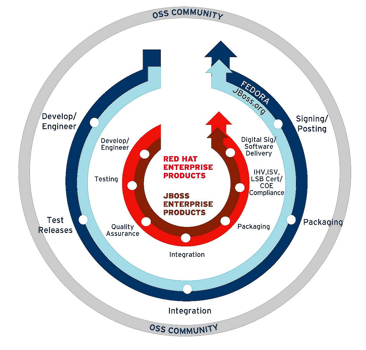 La preview de Red Hat Openstack se basaba en la versión de la comunidad Essex. El programa de Early Adopter de Red Hat OpenStack se basa en la versión de la comunidad Folsom, de la que Red Hat es el segundo mayor contribuidor empresarial. En la versión más reciente de la comunidad OpenStack.org, Grizzly, Red Hat se ha convertido en el principal contribuidor corporativo de código.