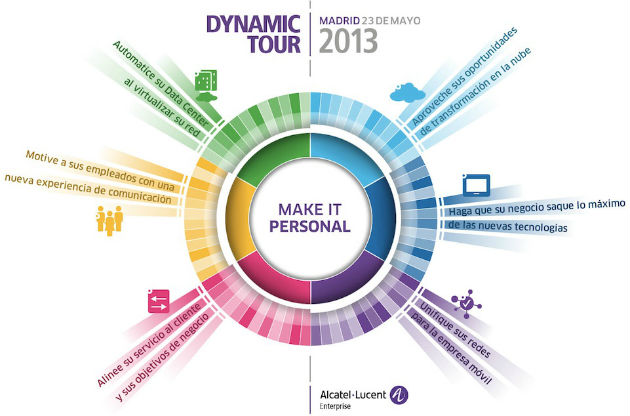 Alcatel Lucent ha celebrado esta mañana en Madrid su Dynamic Tour, un evento en que se ha reunido con más de 300 clientes y partners. Dymanic Tour ha servido para mostrar la estrategia y los próximos anuncios de la compañía, especialmente en el terreno cloud. Además ha habido espacio para ponencias, casos de éxito, demostraciones y talleres prácticos.