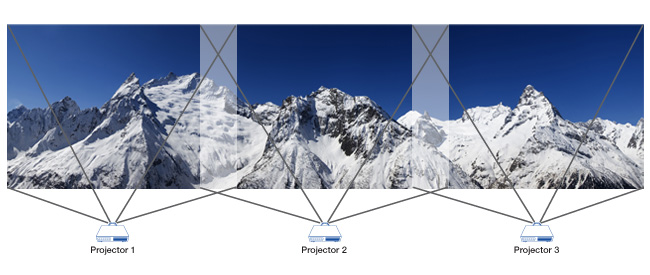 La tecnología edge-blending (que permite proyectar imágenes más amplias, largas o grandes) está ahora integrada en el hardware, permitiendo a los integradores de sistemas crear fácilmente imágenes panorámicas, con fusiones perfectas entre los proyectores utilizados.