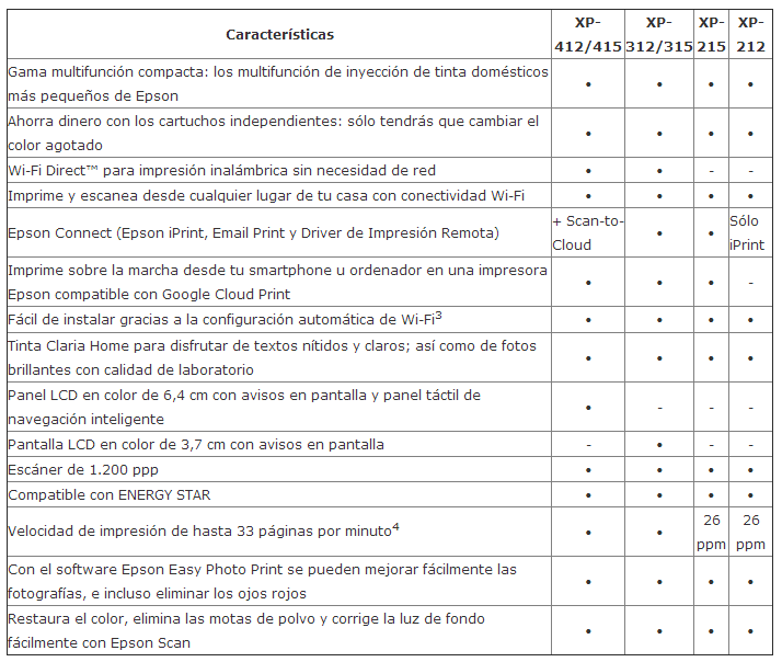La gama incluye los modelos Expression Home XP-412/415, 312/315, 215 y 212. Cada equipo ofrece la oportunidad de ahorrar espacio, dinero y tiempo gracias a sus dimensiones más pequeñas, cartuchos de tinta independientes y gama de funciones fáciles de usar.