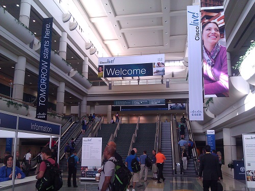 Cisco Live 2013 Orlando. Ya hemos aterrizado en el Orange County Convention Center (OCCC), un impresionante centro de convenciones que espera dar cabida a 20.000 personas en el mayor evento anual de la compañía. El día de hoy se espera el registro de la mayoría de asistentes, que van llegando poco a poco, mientras que el «plato fuerte» será mañana con la keynote de John Chambers, CEO de Cisco.