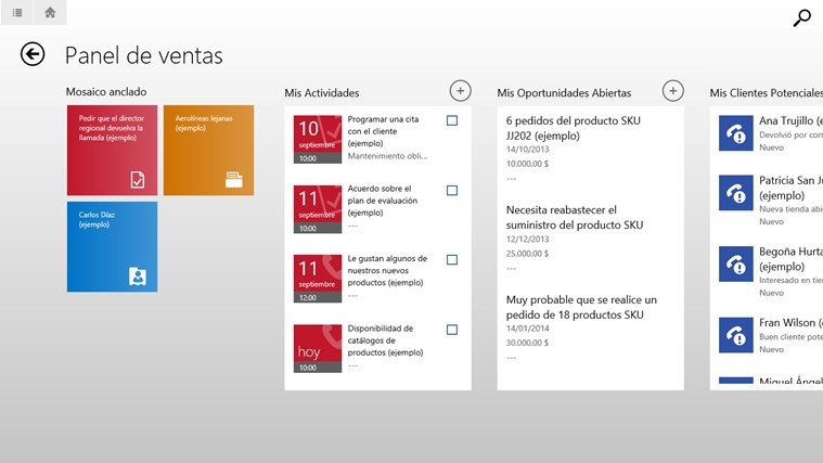 Herramienta empresarial esencial para mantener la conectividad y la productividad en cualquier lugar, permite el acceso a las actividades, las cuentas, los contactos, los clientes potenciales y las oportunidades desde un panel fácil de usar.