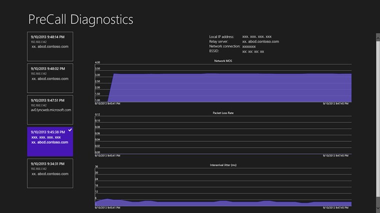 También permite averiguar problemas para el inicio de sesión y ofrece indicadores gráficos de parámetros de red como network MOS, pérdida de paquetes o variabilidad temporal Jitter. la aplicación requiere una cuenta de Lync.