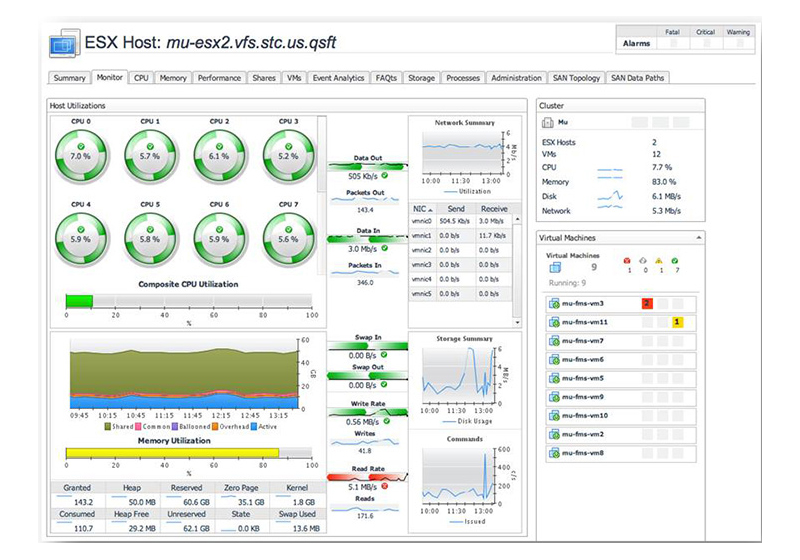 - Foglight for Storage Management 3.0 asegura la configuración correcta en cuanto al almacenamiento para optimizar el rendimiento y la disponibilidad de la infraestructura virtual. Proporciona a los directores de virtualización una visibilidad total de la infraestructura del espacio físico de almacenamiento situada bajo los almacenes virtuales, permitiendo identificar inmediatamente equipos físicos, MVs y sistemas almacenamiento con problemas de rendimiento causados por equipos físicos subyacentes, componentes estructurales y de almacenamiento y sugerencias para resolver problemas. Foglight for Storage Management reúne amplios parámetros de rendimiento y presenta los datos con una interfaz gráfica completa que incorpora diagramas de arquitectura, gráficos, alertas y pantallas desglosadas para una rápida identificación de los problemas de almacenamiento físico y virtual.