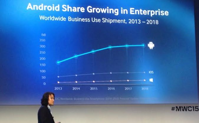 Injong Rhee, EVP de Samsung Enterprise Business Team, comezó su intervención exponiendo la importancia que ha ido ganando Android en los últimos años a nivel profesional. “Según datos de IDC, casi el 74% del mercado global móvil será Android a finales de 2015 y mantendrá senda de crecimiento al menos hasta 2018. Por ello, nos hemos centrado en hacer un dispositivo seguro para el mercado móvil del futuro» señaló el máximo responsable del proyecto KNOX.