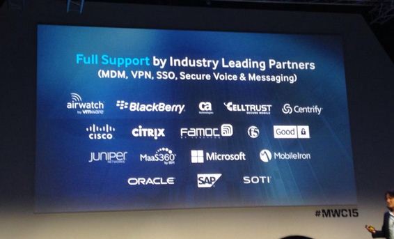 Samsung, consciente de la necesidad de establecer alianzas, contará con empresas como Airwatch, Blackberry, CA Technologies, CellTRUST, Centrify, CISCO, CITRIX, Famoc, Good Lock, Juniper Networks, MaaS360 por IBM, Microsoft, MobileIron, Oracle, SAP, F5, SOTI, entre otros, grandes proveedores de soluciones fundamentales para ofrecer la especialización que demanda el nicho corporativo.
