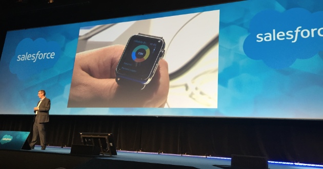 Un detalle curioso de Essentials Madrid 2015 es que por primera vez en todo el mundo se pudo ver a la aplicación de analítica de Salesforce funcionando en el Apple Watch.