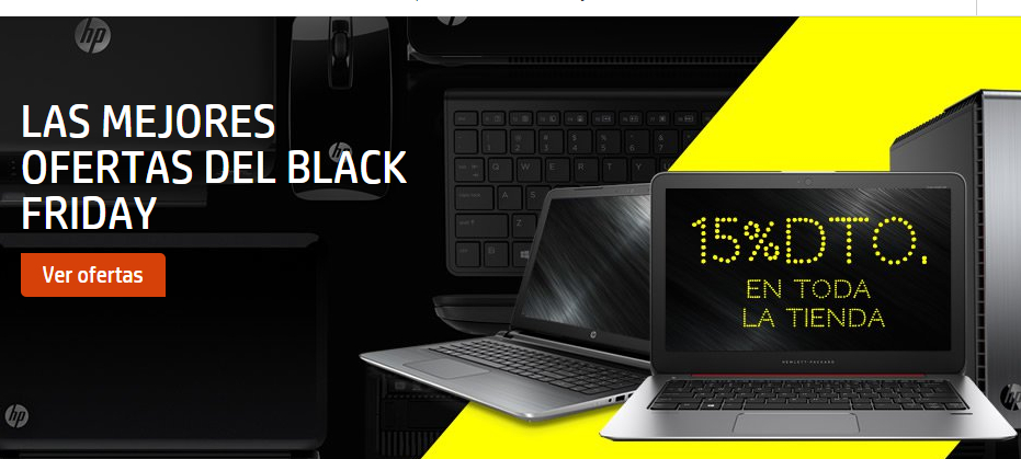 Con motivo del Black Friday 2015, la jornada especial de venta con descuentos que inaugura la campaña de compras navideñas, original de Estados Unidos pero extendida a otras regiones como Europa, la tienda HP está ofreciendo un 15 por ciento de descuento en equipos de consumo y profesionales, impresoras y accesorios.