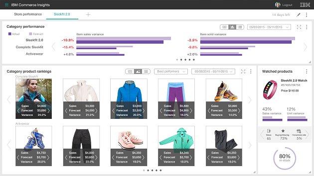 IBM Commerce Insights es una nueva solución que aprovecha las capacidades cognitivas de Watson Analytics para permitir a los profesionales obtener una visión en tiempo real del comportamiento de los consumidores y de los factores del mercado que influyen en su negocio. Gracias esta visión, es posible identificar oportunidades y obstáculos, y tomar decisiones para aumentar las ventas. Con el anuncio de esta nueva solución, IBM sigue apostando por incorporar nuevas capacidades a sus soluciones de Commerce, con el fin de que los negocios online dispongan de la información necesaria para evaluar el rendimiento de sus productos y poder así tomar las mejores decisiones.