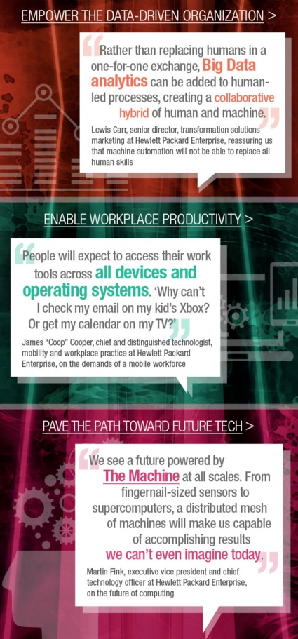 Vemos el futuro impulsado por The Machine. Desde sensores del tamaño de una uña hasta supercomputadores. Una malla de máquinas distribuidas que ofrecerá resultados que somos incapaces de imaginar hoy en día.