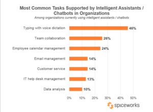 ¿Y para qué se emplean los “chatbots” en el trabajo? Aquí hay pocas sorpresas. La mayoría (un 46%) los usa para dictar textos con el reconocimiento de voz. Otros usos son para trabajos en equipo (26%), gestionar el calendario (24%) o el correo electrónico (14%)… Lo que parece claro es que se trata de una tecnología en crecimiento, y es de esperar que muchas más empresas y usuarios personales se sumen a ella en los próximos meses. Y que, cuando lo hagan, Microsoft Cortana parece el mejor preparado para ayudarlos. Puedes encontrar muchos más datos del estudio en esta página.