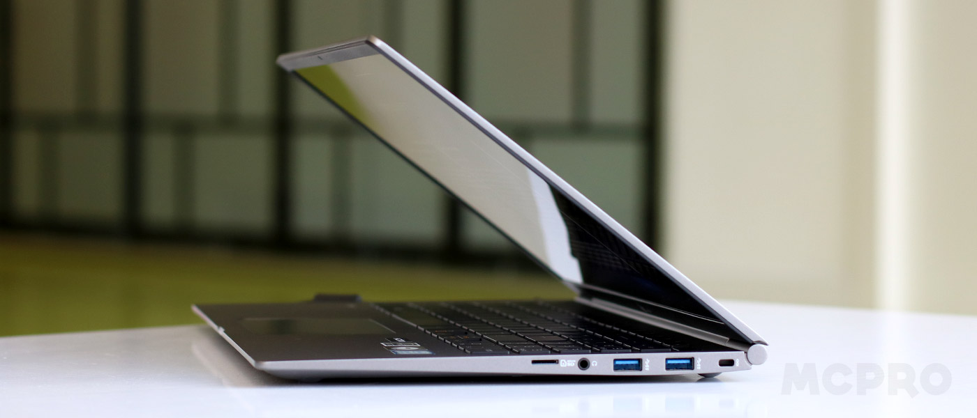 En cualquier caso el aspecto es indudablemente de un portátil premium. Al abrirlo encontramos algunos peros que corresponden seguramente a decisiones de diseño provocadas por la obsesión de proporcionar un portátil lo más delgado y ligero posible; la tapa del portátil, por ejemplo, al tacto parece algo endeble ya que al abrirlo se comba ligeramente y da la impresión de poco sólida.