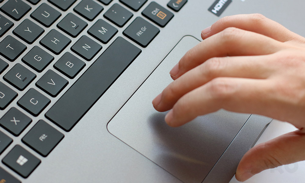 A pesar de los forzados inconvenientes del teclado que comentamos, el tacto de las teclas es muy bueno y tras una breve adaptación permite escribir con cierta soltura y velocidad. Curiosa la disposición del botón de encendido en la parte superior derecha del teclado. Este botón funciona también como sensor de huellas para la activación del portátil.