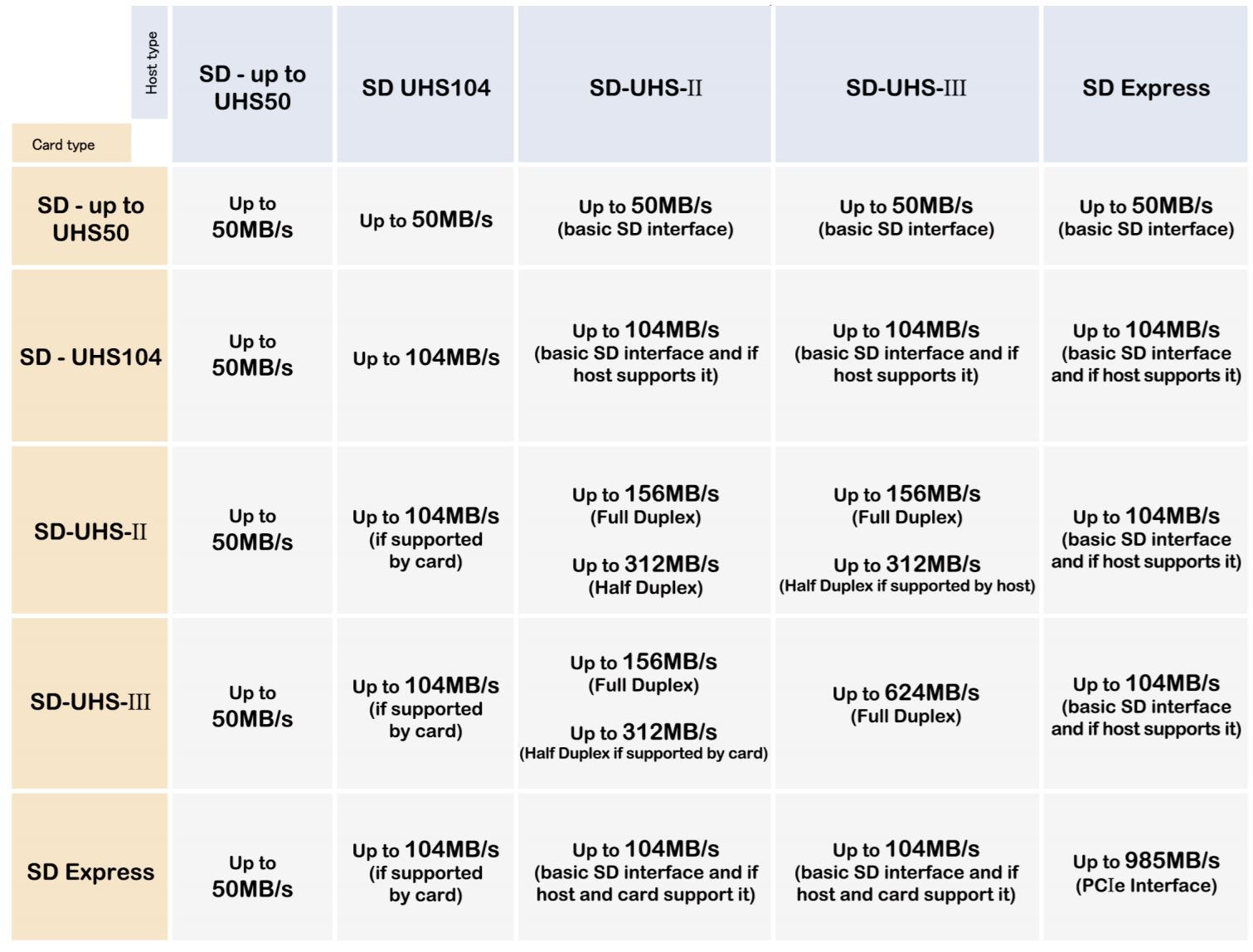El uso de estas interfaces, las más rápidas para transferencia de datos y usadas en soluciones de almacenamiento interno como las SSD PCIe, permite ofrecer un rendimiento de 985 Mbytes por segundo, mientras que el protocolo de capa superior NVMe, habilita un mecanismo avanzado de acceso a memoria, lo que permite un nuevo mundo de oportunidades para las SD.