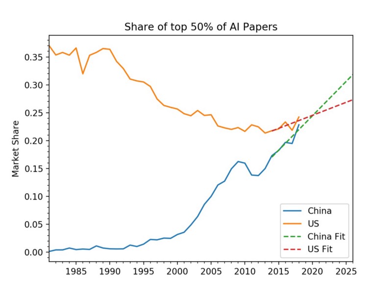 En efecto, China empezó llevando a cabo una gran cantidad de estudios y de investigación dedicada a IA, pero no ofrecía el mismo nivel de calidad que las investigaciones de Estados Unidos, así que los expertos y los medios recurrían en mayor medida a éstos últimos por ser más fiables. Los esfuerzos de China en el sector de la inteligencia artificial han pasado del enfoque cuantitativo al cualitativo, lo que ha mejorado su fiabilidad y les ha permitido ganarse la confianza de investigadores y expertos.