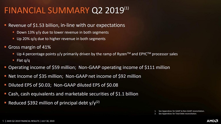 La compañía que dirige Lisa Su ha publicado los resultados del segundo trimestre de 2019 y los números son, en general, muy buenos. AMD ha cumplido con las previsiones de ingresos que habían lanzado los principales analistas, y ha demostrado que puede mantenerse sin problemas en el buen camino.