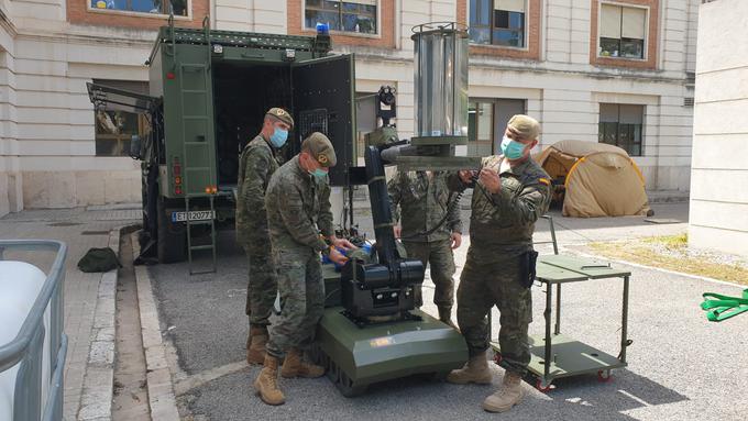 Y como desinfectar estos equipos no siempre es sencillo y tiene algunos riesgos, puede que algunas empresas empleen otros métodos como por ejemplo, el uso de luz ultravioleta. Distintos estudios han demostrado que el uso de este haz de luz es efectivo para eliminar el virus tanto en el aire, como de todo tipo de superficies. Tanto es así, que ya ha empezado a ser utilizado por equipos especializados de todo el planeta, como el Ejército de Tierra de España. En este caso hablamos de Atila, un robot al que se ha instalado un emisor de luz Ultravioleta y que se está empleando para desinfectar aquellos lugares en los que no pueden aplicarse productos convencionales.