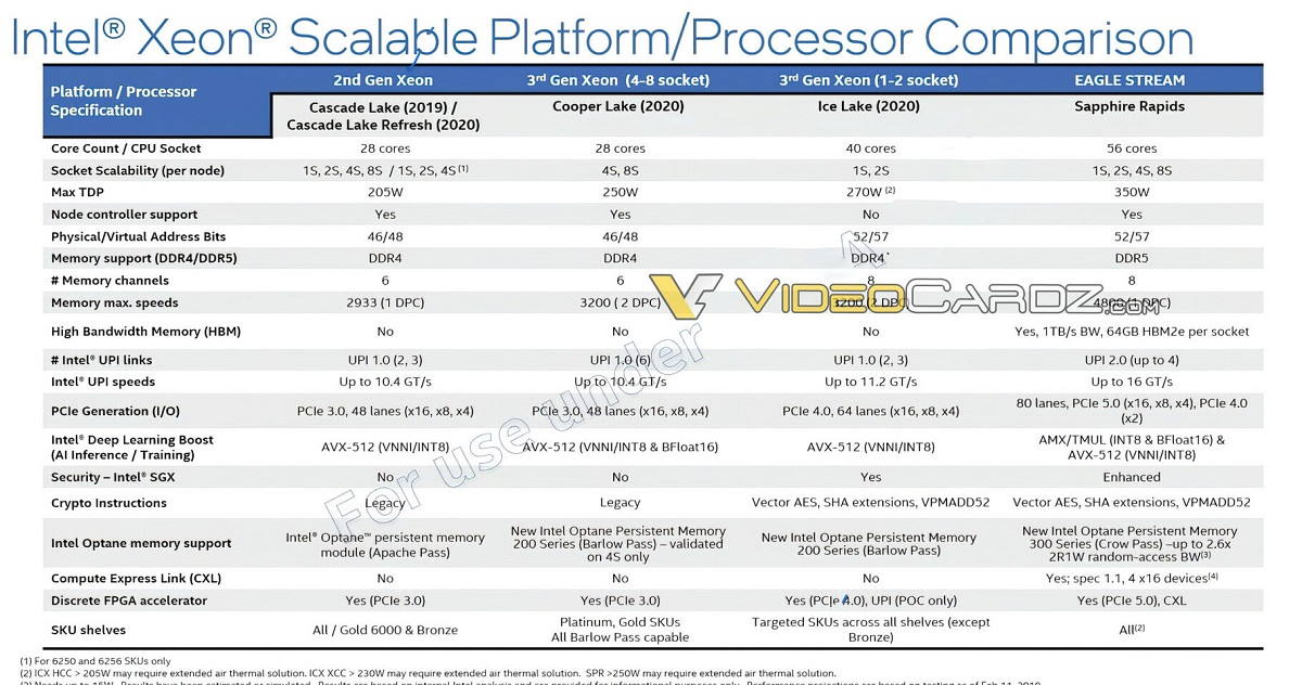 Sapphire Rapids es la generación que sucederá a los recién presentados Ice Lake, sobre los que ya tuvimos la ocasión de hablaros en su momento en este artículo. Volviendo a Sapphire Rapids, Intel pasaría, como indicamos, de un máximo de 40 núcleos y 80 hilos por CPU y socket a 56 núcleos y 112 hilos, manteniendo, eso sí, el proceso de fabricación de 10 nm.