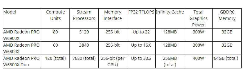 Construidas bajo la arquitectura gráfica más avanzada de AMD, RDNA 2 y con tecnologías avanzadas como Infinity Cache, la nueva línea de dedicadas para estaciones de trabajo incluye dos modelos, Radeon PRO W6800X y Radeon PRO W6900X, además de la W6800X Duo, una configuración de doble GPU que usa la tecnología de interconexión AMD Infinity Fabric de alta velocidad para aumentar el rendimiento y ofrecer 64 Gbytes de memoria dedicada.